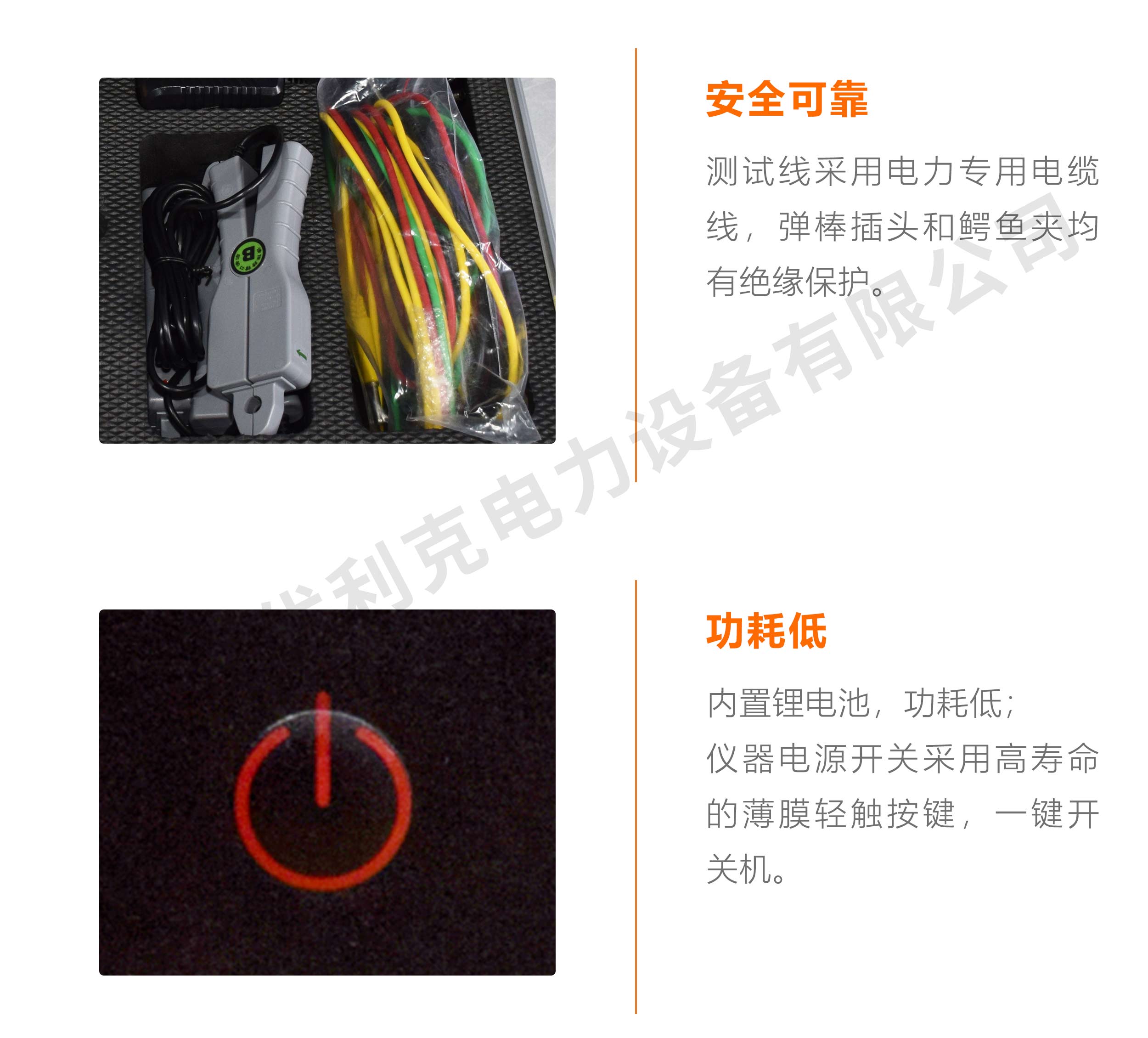 12、測試線采用電力專用電纜線,彈棒插頭和鱷魚夾均有絕緣保護。